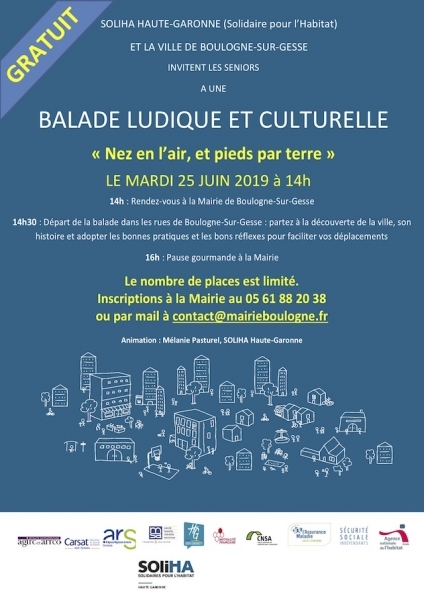 SoliHa et la ville de Boulogne sur Gesse proposent aux seniors une balade ludique et culturelle. L'objectif est de mettre en avant les bonnes pratiques et les bons réflexes facilitant le déplacement et la mobilité.