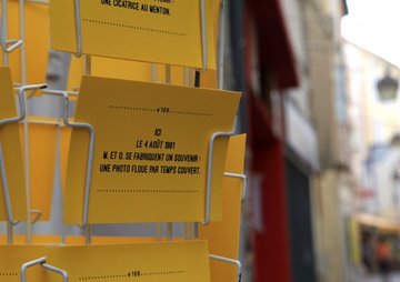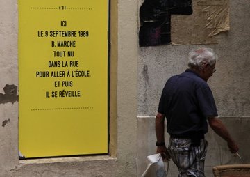 Jour après jour, les Légendes de La Vaste Entreprise vont véritablement envahir le centre-ville de Carbonne. Détournant les formules des plaques commémoratives « Ici vécut… » ou « Ici naquit… », des encarts jaunes (!) vont fleurir sur tous les espaces disponibles de la ville pour s'offrir à la lecture de tous.