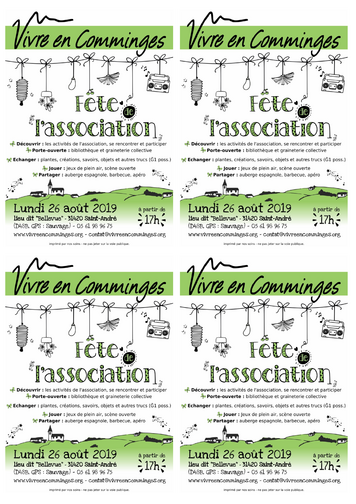 Rendez vous pour la Fête de l'association le lundi 26 août 2019 à 17h.