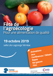 Le 19 octobre, à partir de 14h, nous vous invitons à la Fête de l'agroécologie, à Séméac, proche de Tarbes.