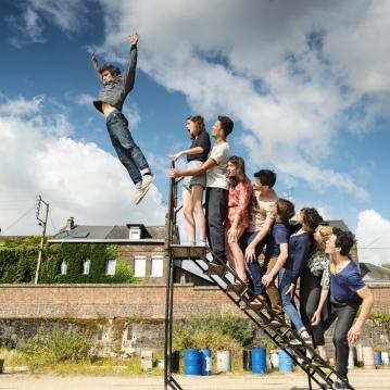 Ce spectacle est écrit en deux parties, chacune existant isolément. Mais voir les deux, c'est mieux ! La première est déambulatoire dans l'espace public, alors que la seconde est fixe en extérieur, mêlant danse et théâtre, émotions fortes et rires francs. Venez observer cette bande de jeunes, le désir chevillé au corps, embarquée dans le joyeux mouvement de la vie, tantôt seul, tantôt en nuée, chacun essayant de faire sa place, de voler de ses propres ailes sans y laisser trop de plumes… Cela vous rappellera vos propres enfants ou, plus simplement… vous-même…