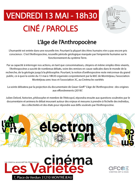 Dans le cadre de nos soirées CINÉ / PAROLES, le Cinéma Les Variétés de Montréjeau organise la projection du documentaire "L'age de l'Anthropocène" suivie d'une discussion.