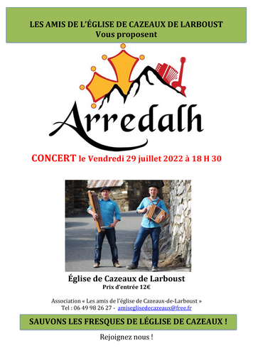 Ils se produiront à l'église de Cazeaux de Larboust pour soutenir l'association des amis de l'église de Cazeaux de Larboust qui œuvre pour sauver les fresques exceptionnelles du XV siècle.