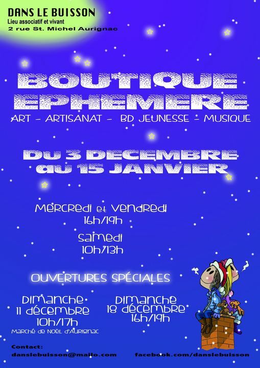jusqu'au 15 janvier le merc &vend 16h/19h et samedi 10h/13h