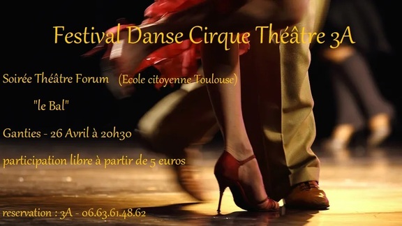 Proposé dans le cadre du "Festival de Danse, Cirque,Théâtre" des 3A Aspet/ Saint Gaudens l'ecole citoyenne de Toulouse vous accueille des 20h30 pour sa pièce "Le Bal".