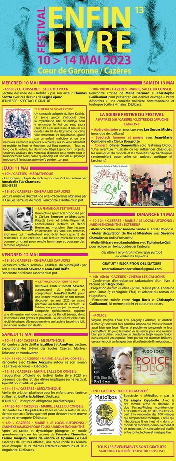 Comme chaque année depuis 14 ans, le festival Enfin livre ambitionne d'être un grand rendez-vous festif, populaire et de qualité autour du livre en Cœur de Garonne.