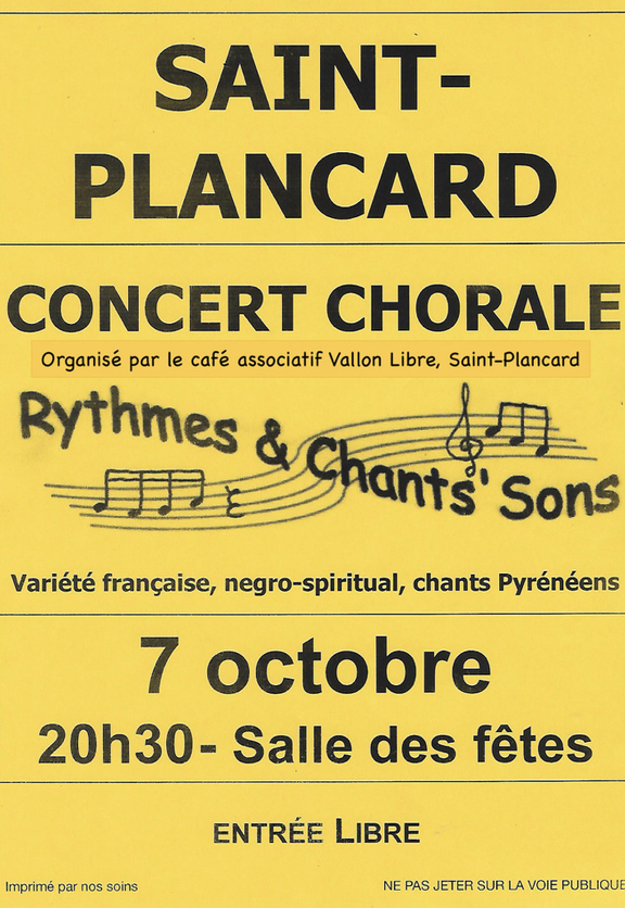 La chorale Rythmes et Chants Sons avec leurs chants Pyrénéens, spirituels et françaises à 20h30.