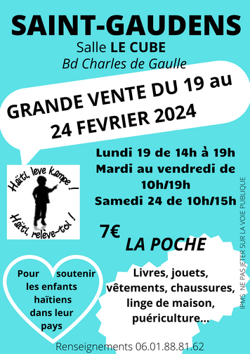 Les personnes donnent toute l'année et nous vendons 2 fois par an . Ouverture lundi 19 à 14h jusqu'à 19h . Tous les autres jours de 10h à 19h et samedi 24 de 10h à 15h .