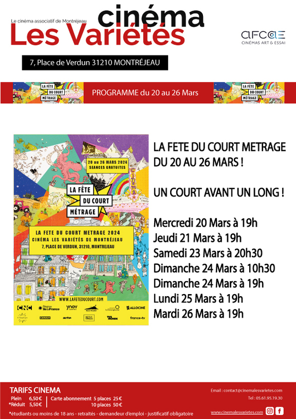 LA FETE DU COURT METRAGE du 20 au 26 Mars au Cinéma Les Variétés de Montréjeau !