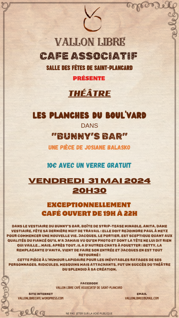 PIECE DE THEATRE Organisé par Vallon Libre - BUNNY'S BAR