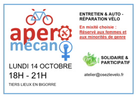 - Venir avec un vélo à réparer ou à entretenir (1 vélo par personne, c'est mieux ;),