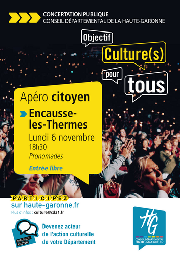 Dans le cadre de la concertation Objectif Culture(s) pour tous, le Conseil départemental organise un apéro citoyen pour nourrir les futurs dispositifs de la politique culturelle du Département. Vous pouvez venir avec vos proches, vos amis et tout concitoyen dont la voix gagnerait à être mieux entendue !