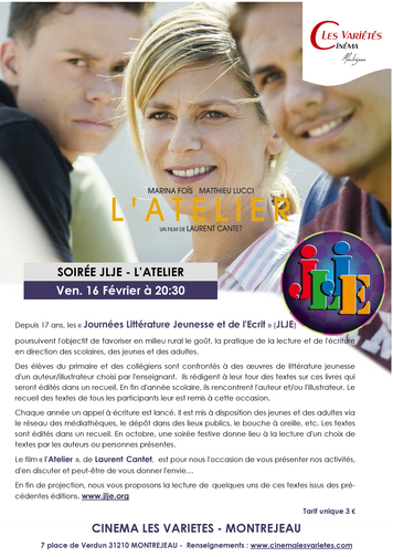 Le film « l'Atelier », de Laurent Cantet, est pour nous l'occasion de vous présenter nos activités, d'en discuter et peut-être de vous donner l'envie…