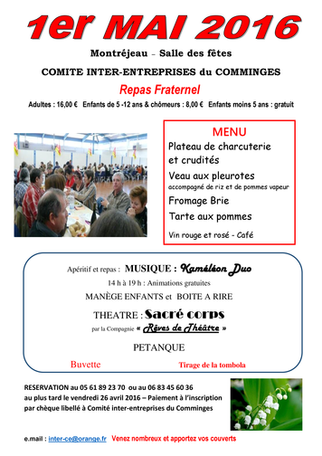 - 12h : repas fraternel à Montréjeau (salle des fêtes)