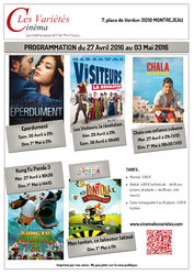 Veuillez trouver la programmation du Cinéma Les Variétés de MONTREJEAU pour la semaine du 27 Avril au 03 Mai 2013